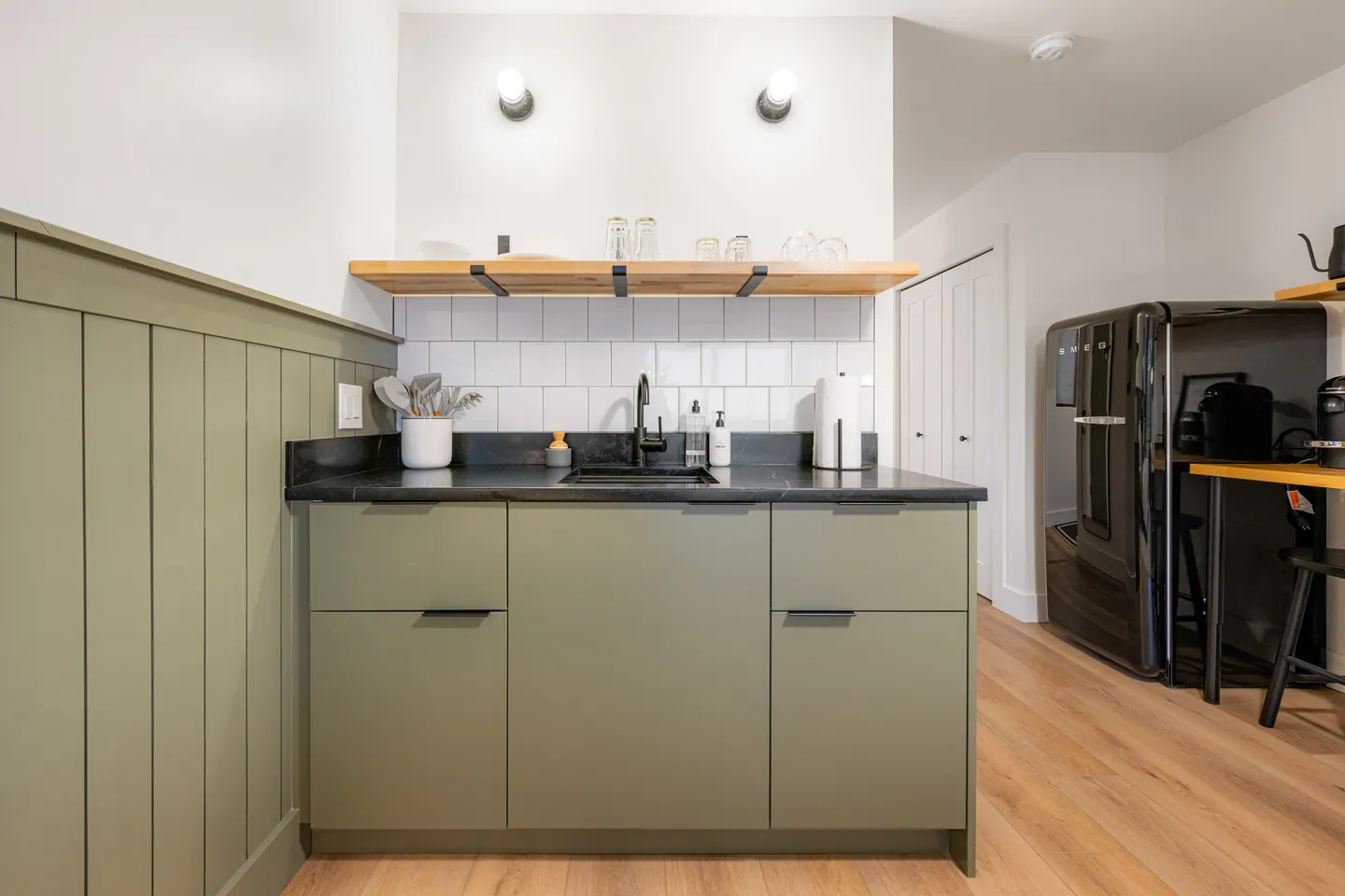 Apartment was wonderful! Fun decor and delightful touches like faux retro appliances and a record player that looked old but wasn’t, complete with an appropriately eclectic selection of albums. Our grown kids loved the hideaway bunk beds, and our bed was very comfortable. As advertised, the outside of the property looks like the old motel that I suspect it was, but do not judge this book by its cover. A special spot, and Erin could not have been nicer to work with and easier to contact. Highly recommend!